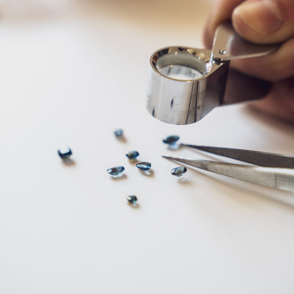 L’Atelier vous propose des pierres précieuses recyclées, ainsi qu’une sélection de pierres françaises comme le Saphir d’Auvergne.